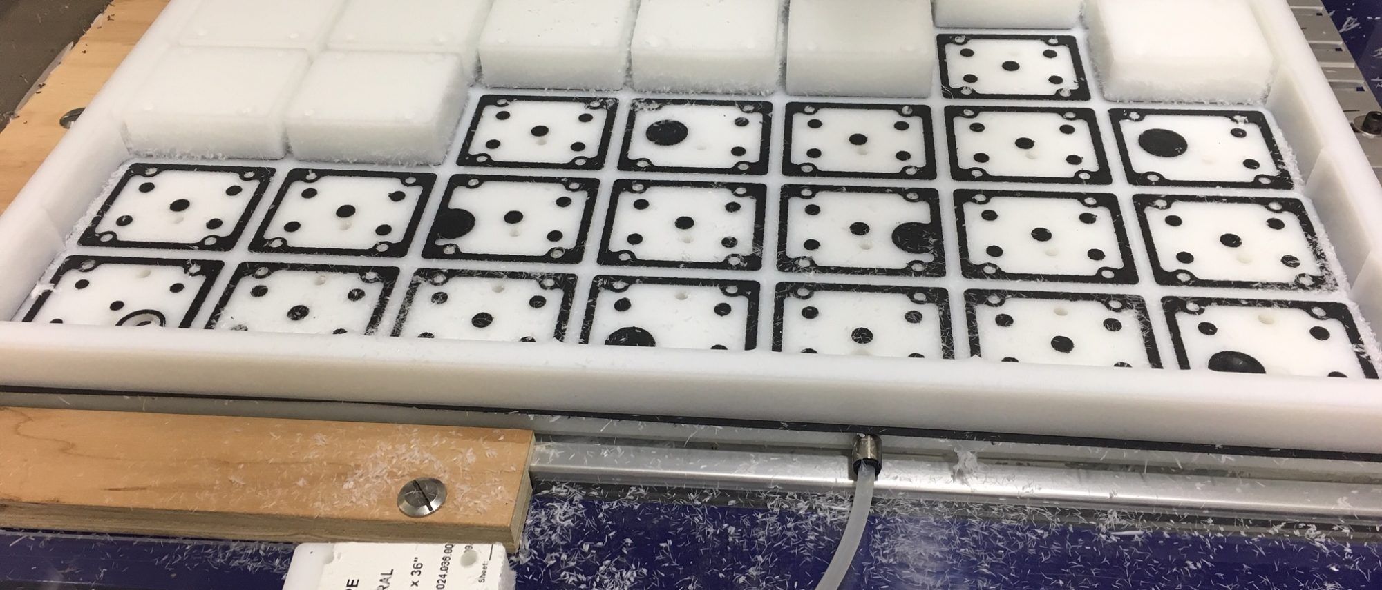 products cannot hold due to the limited surface area of the part. in this case for the smallest of parts. are for small and/or narrow parts that would be difficult to gasket if using one of the other methods because of the limited surface area of the part. By covering the entire fixture with gasketing, users can route parts directly into the gasketing, and then create custom vacuum pocket areas to match the size and shape of their parts.