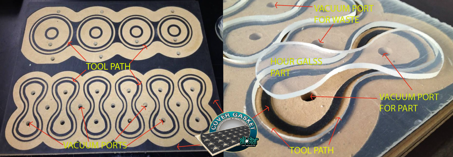 This customer in Warren, RI was looking to make plastic parts for his desktop router. He was having hold issues due to the size of the parts and the fact they were slick in nature. These custom-cut gaskets were able to maximize his vacuum clamp area, and as a result, is able to maximize his vacuum clamp on the part.