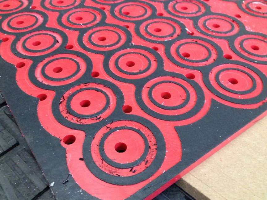 Using a non-porous fixture board to prevent unnecessary vacuum leaks, the self-adhesive Cover Gasket is laid out across the Fixture Board. By offsetting the existing CAD program, cut parts directly through the gasket sheet making custom vacuum pockets that completely match the part for maximum custom clamping.